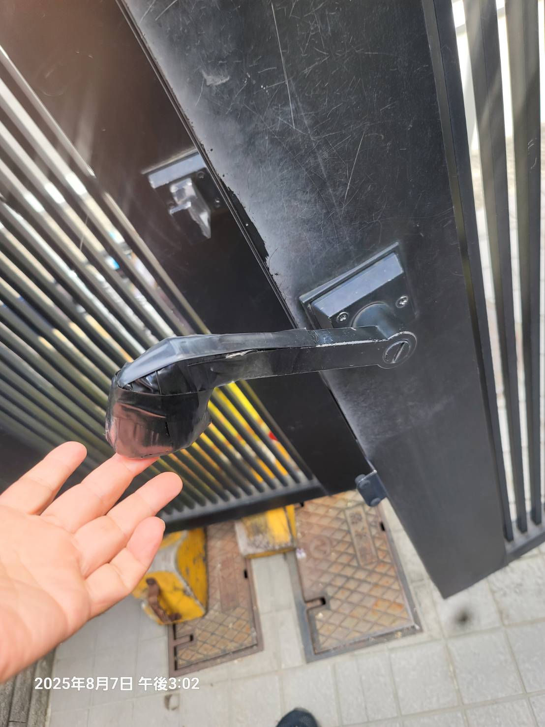 お客様:「あのね、門扉のノブが壊れちゃって……。開けっ放しになるから、折れた部品にテープ巻いて使ってるんだけど……」